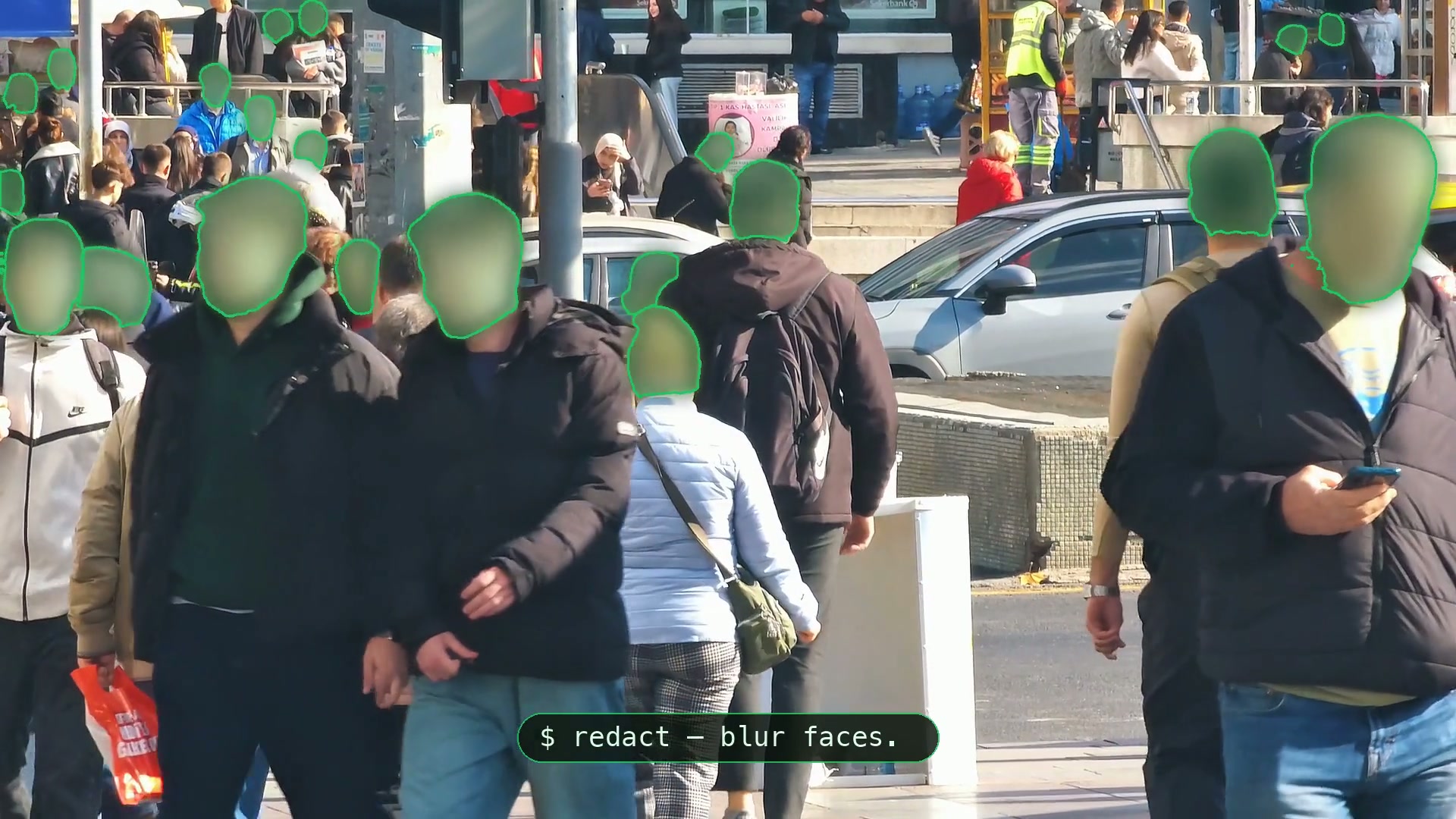 Faces, plates, and sensitive screens — redacted automatically in seconds.